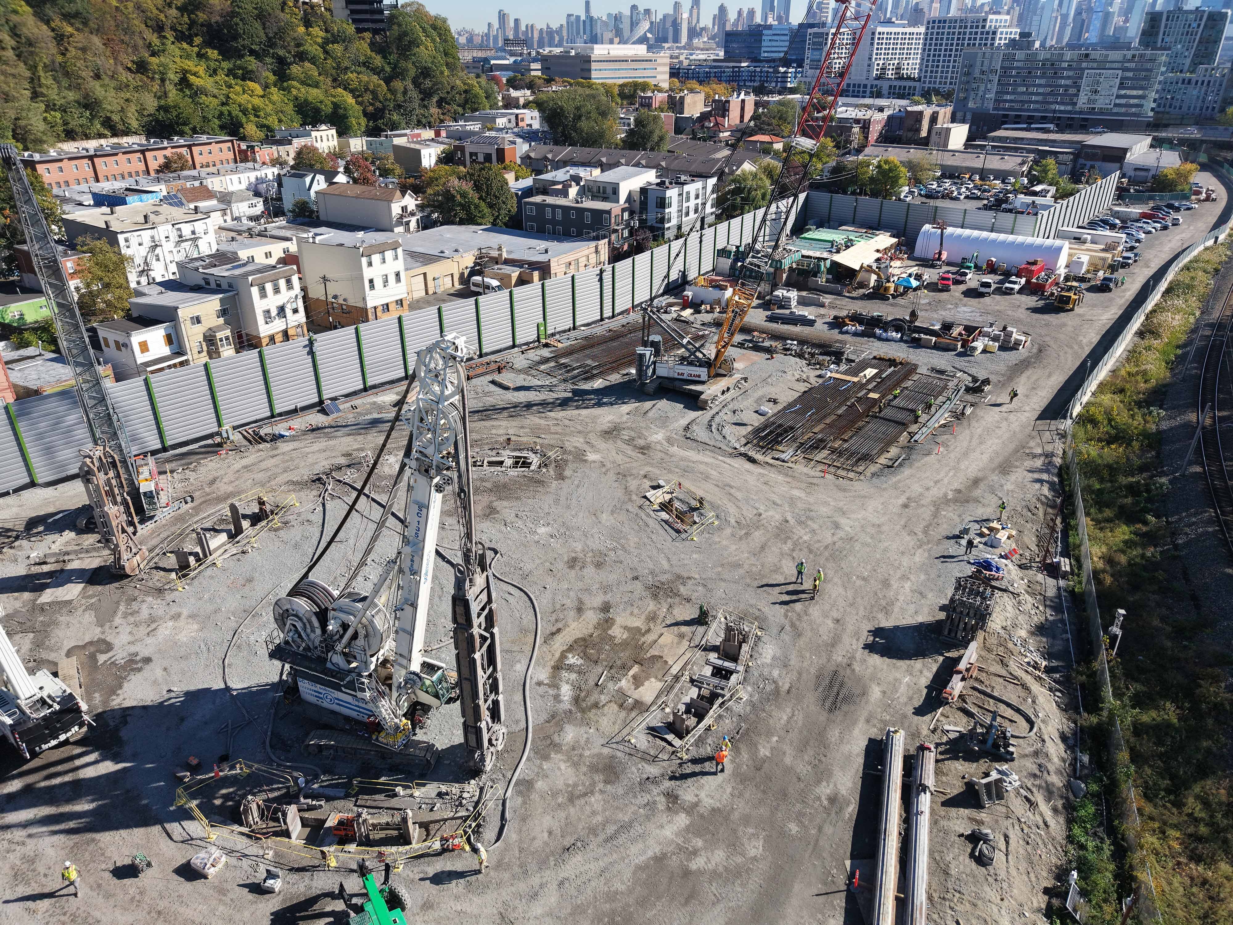 October 2025: Ten of the 42 panels that will make up the slurry wall of the Hudson County Access Shaft have been completed.