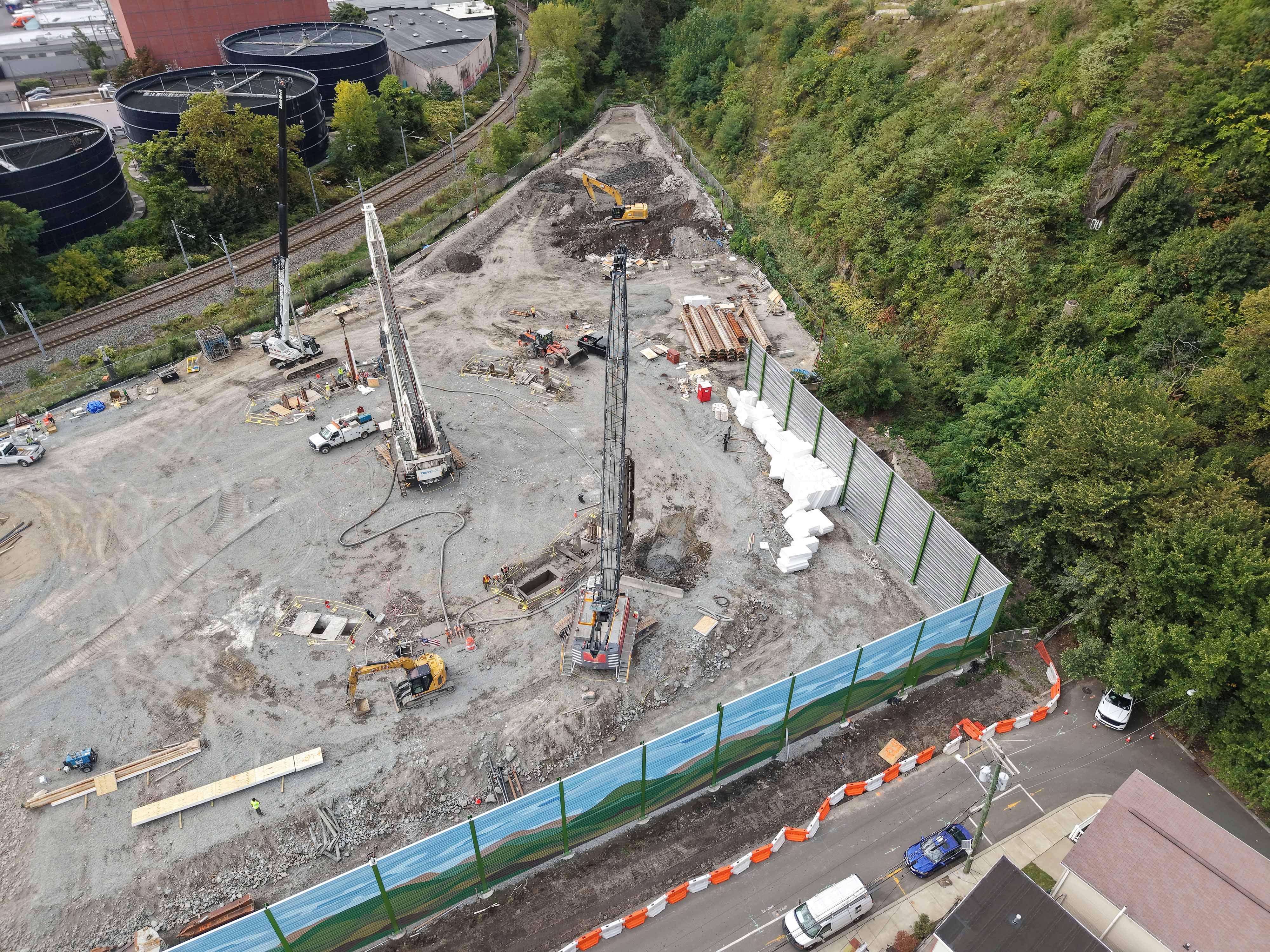 August 2025: We installed a barrier along the edge of the Hudson County Shaft construction site to reduce noise from the work site.