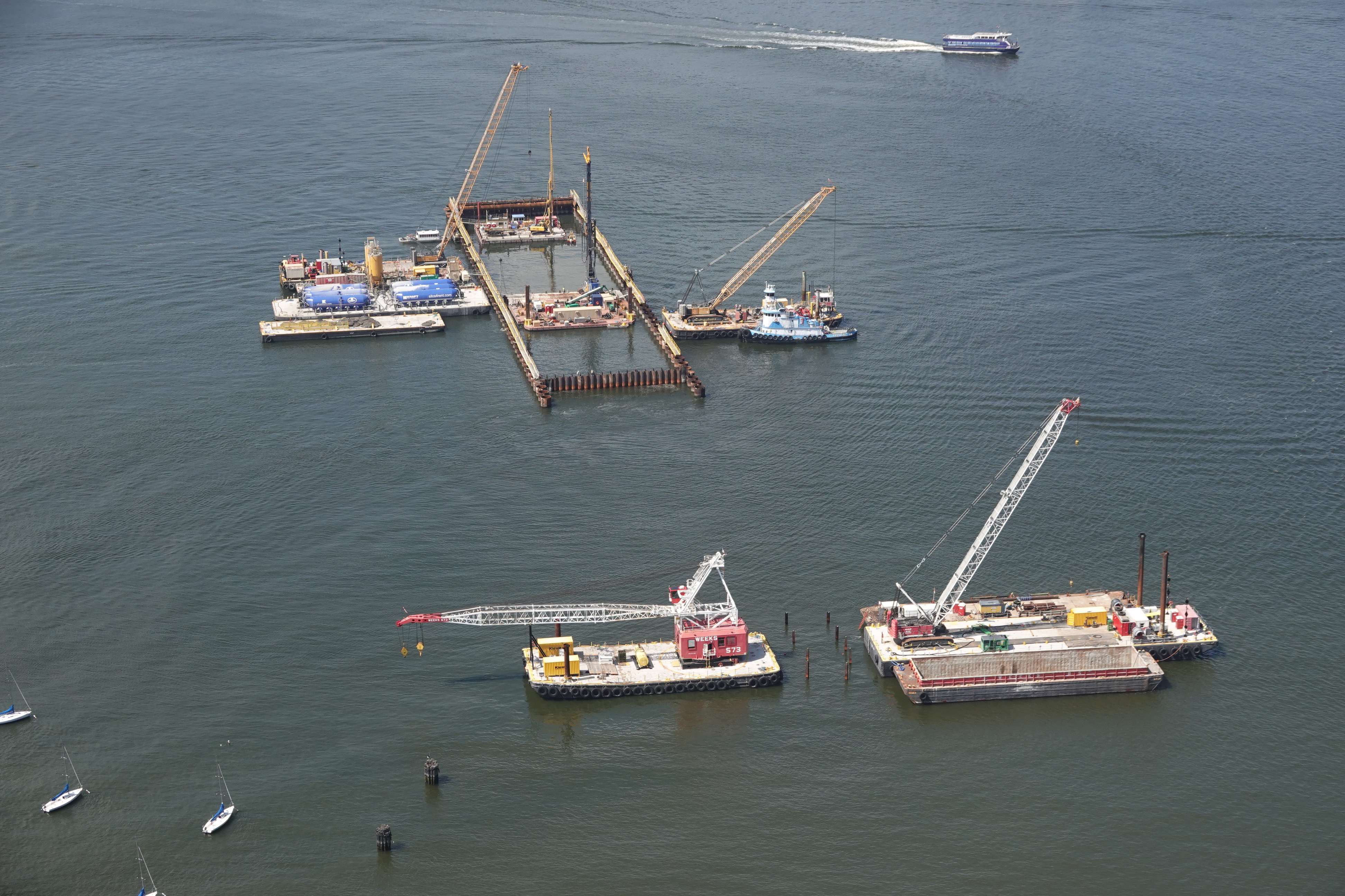 September 2025: The cofferdam containing the Hudson River Ground Stabilization Project work area is moving closer to Manhattan as the team makes progress on stabilizing the riverbed.